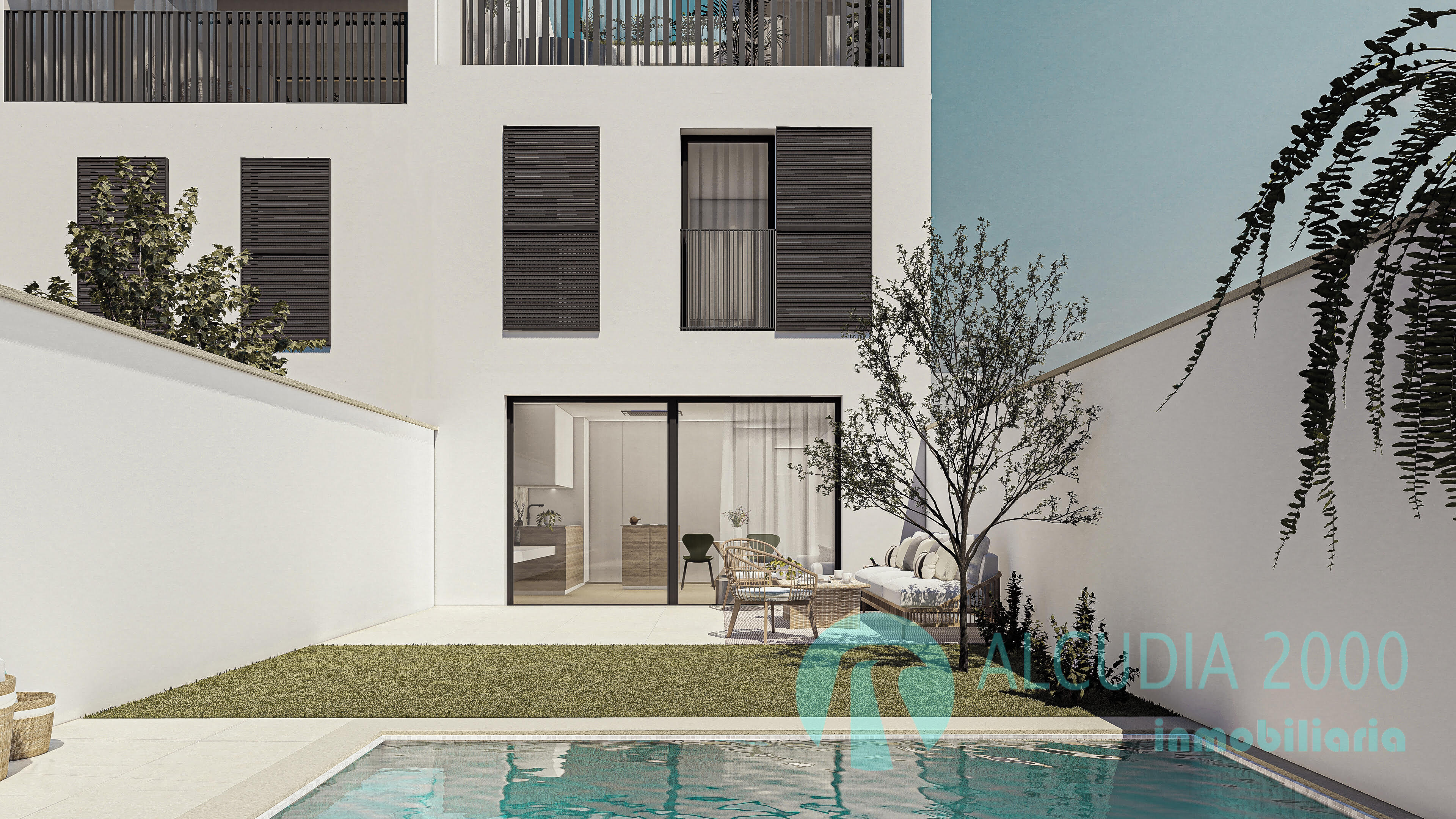 Las viviendas se distribuyen en P. B. + P1 + P2 con terraza y piscina privada en P. B. y solarium en P2.